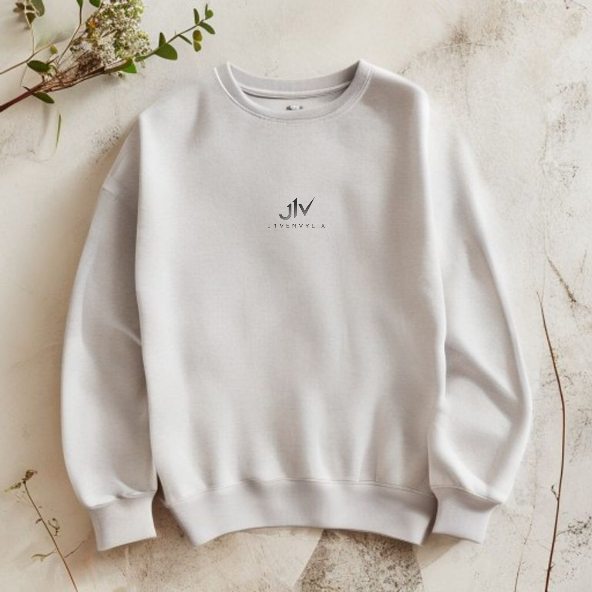 J1V Lightweight Crewneck · Soft Grey (1) · folded in tissue · packed in a recyclable kraft mailer with a hand-signed thank-you card from the cohort lead.