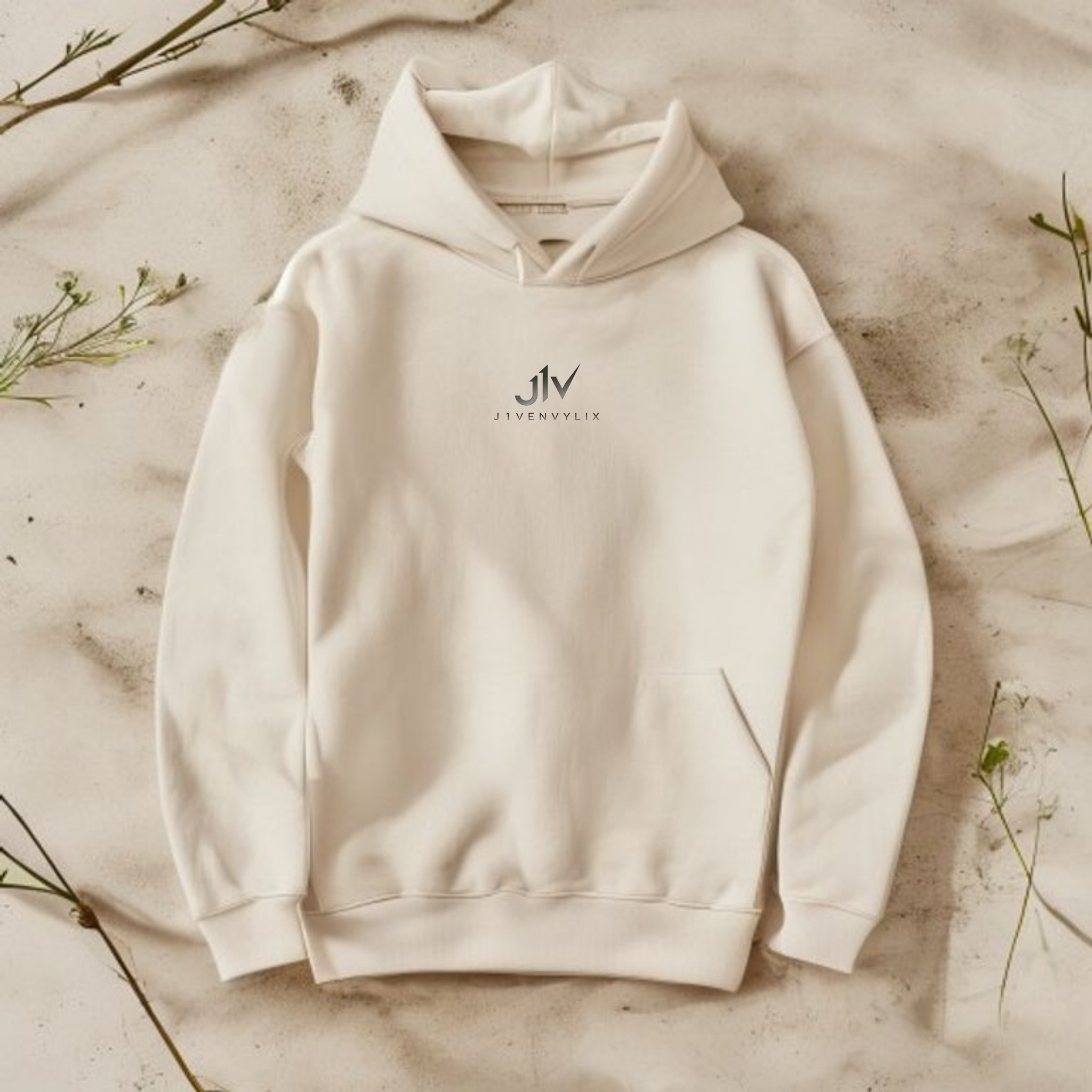J1V Mid-Weight Pullover — ecru midweight pullover hoodie in our heritage range, made in small cohorts at our north Austin facility.