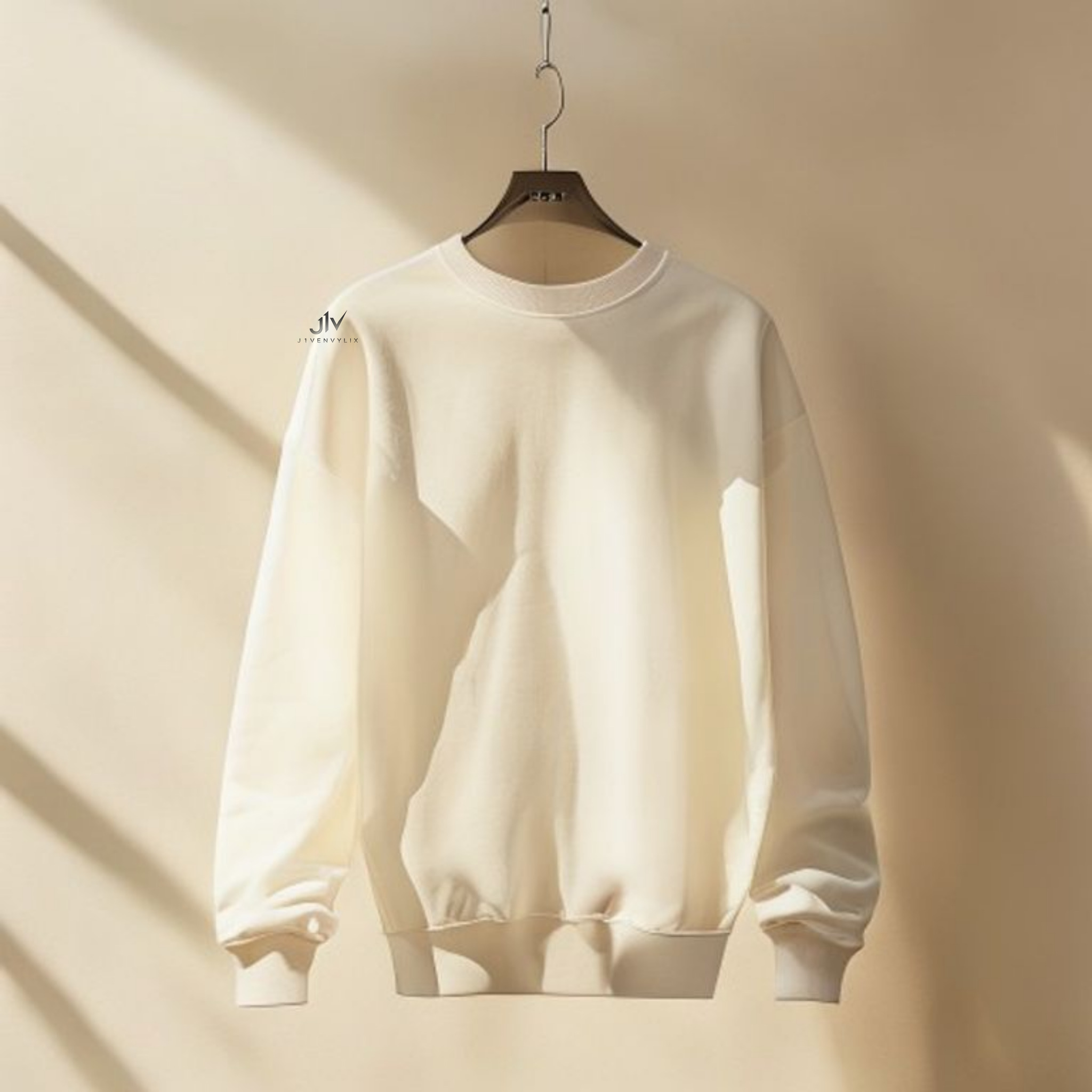 J1V Premium Crewneck · Cream — cream premium crewneck sweatshirt in our heritage range, made in small cohorts at our north Austin facility.